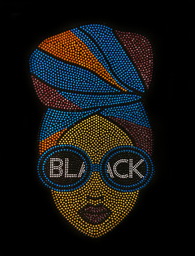 Afro Lady - Multi Blue Rhinestone Design Transfer