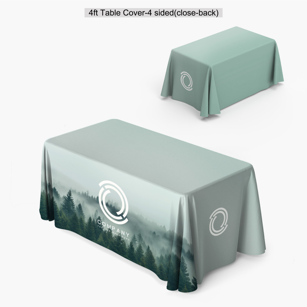Regular price $9.00Our standard table cover is a great table topper for trade shows, exhibitions and presentations. Our table covers are dye sublimated and are 100% washable if they ever get dirty. This table cover is made from our 8.8 oz. polyester table fabric sized for a 96" x 30" x 30" display table. The table cover is sewn with rounded corners and hang approximately 2" above the floor. The back side of this table cover is open keeping the leg area open for sitting exhibitors.