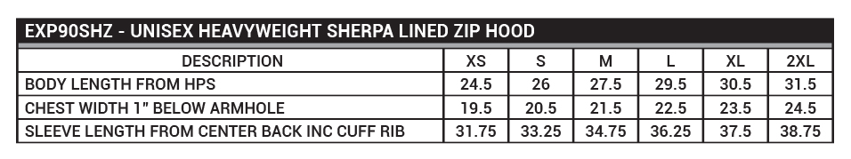 EXP90SHZ UNISEX HEAVYWEIGHT SHERPA LINED ZIP HOOD